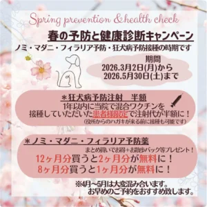 ・【キャンペーン】春の健康診断キャンペーン!(3月2日から) ≫ NEW!!