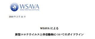 ペットの情報 新型コロナウイルスと伴侶動物についてのガイドライン(WSAVA WSAVA による新型コロナウイルスと伴侶動物についてのガイドラインが発表されましたのでご一読ください ≫従来から言われている通り現在のところ飼い犬や飼い猫から新型コロナウイルスに感染する可能性や伴侶動物が人やほかの動物に感染を媒介すること... 2020.02.22 ペットの情報